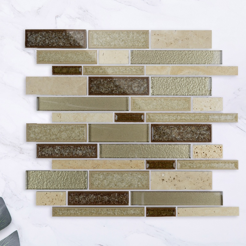 Golden Rectangle Stone Glass Mosaic Tile Lndoor Kitchen Bathroom Wall Decoration Tiles Background Art Mosaic