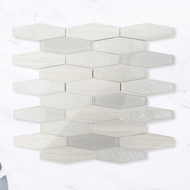 Grey Long Hexagon Stone Glass Mosaic Tile for Kitchen Bathroom Wall Decoration Tiles Stone Mosaic Factory
