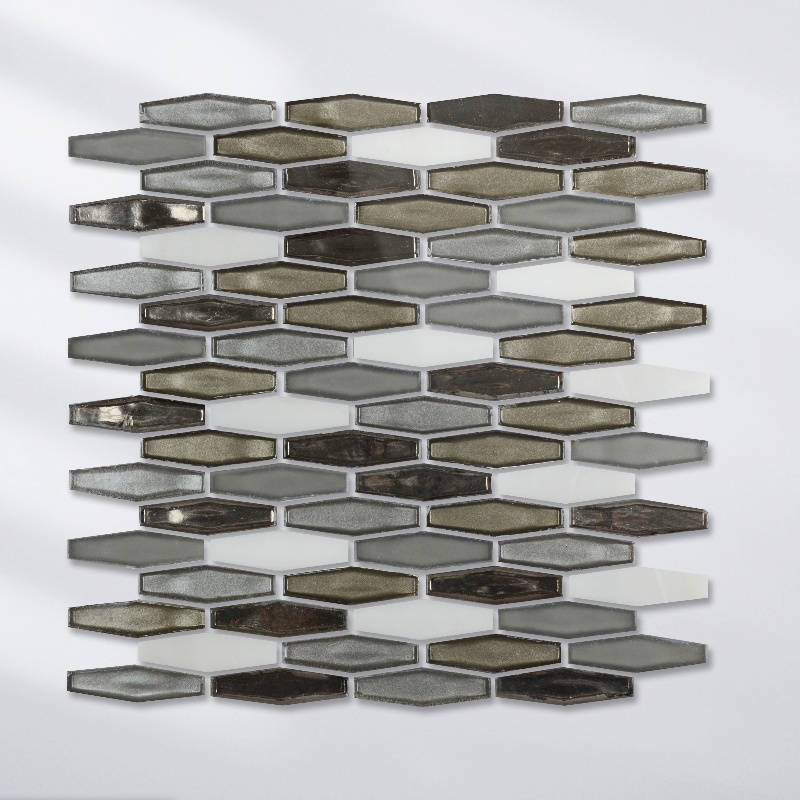 Hexagonal rhombus White and brown Glass Mosaic Tile Kitchen Bathroom Wall Decoration Tiles Factory Wholesale